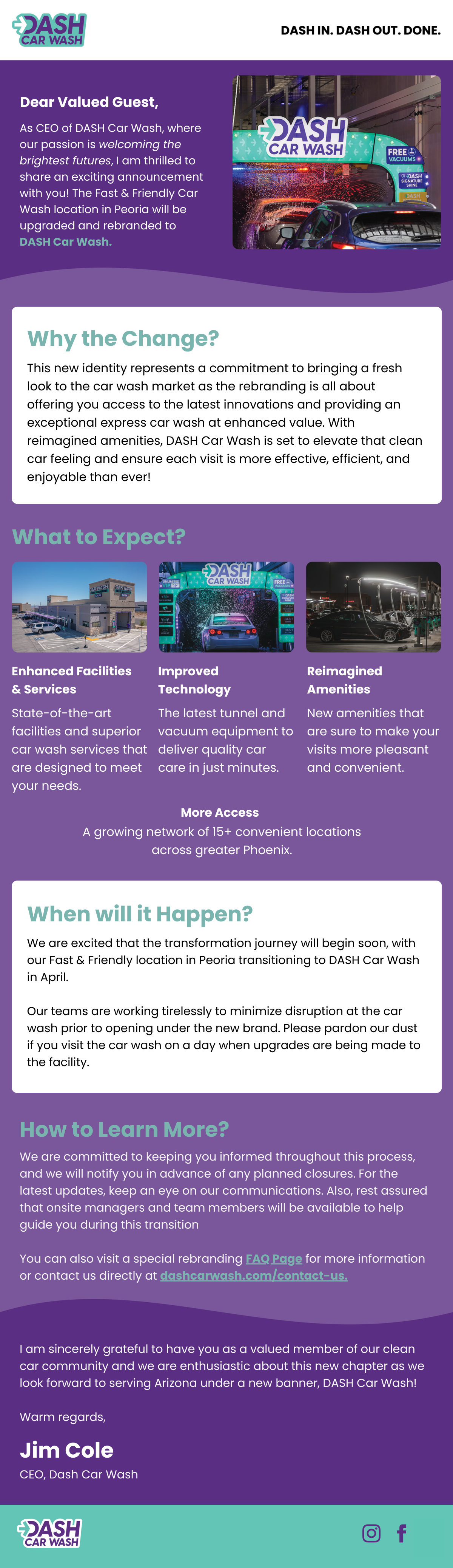 Welcome to Dash Car Wash where we believe in Welcoming the Brightest Futures through excellence, ownership, growth, and gratitude. When you visit a DASH Car Wash you can expect superb facilities, welcoming service, exceptional value…and of course a pristine clean!